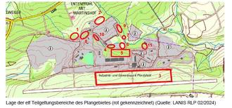Das Plangebiet umfasst insgesamt elf Teilgeltungsbereiche. Diese konzentrieren sich vornehmlich auf den zentralen Teil des Industrieparks Pferdsfeld. Teilgeltungsbereich drei liegt südlich der anderen Bereiche mittig im ehemaligen Flugfeld. Sämtliche Teilgeltungsbereiche zusammen umfassen etwa 33,4 ha.