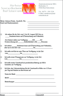 Wir bedanken uns im Voraus für Ihre Mithilfe und freuen uns schon jetzt auf die 18. Mattheiser Sommer-Akademie Bad Sobernheim!