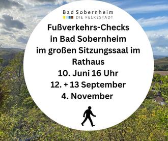 Bad Sobernheim macht sich fit für die Zukunft – und Sie sind gefragt! Als eine von nur zehn Kommunen in Rheinland-Pfalz wurde unsere Stadt ausgewählt, um an den "Fußverkehrs-Checks" des Ministeriums für Wirtschaft, Verkehr, Landwirtschaft und Weinbau teilzunehmen. Das ist Ihre Chance, die Lebensqualität in Bad Sobernheim aktiv mitzugestalten!