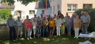 Nach der "Heimatkunde" konnte man zum gemütlichen Teil übergehen. Die Gruppe wurde im schönen Außenbereich des alten Rathauses vom Rathaus-Café-Team mit Kaffee und Kuchen verwöhnt. Hier hatte man reichlich Gelegenheit, sich über alte Zeiten auszutauschen. Und viel zu schnell fand der kurzweilige Nachmittag sein Ende. Aber auch im nächsten Jahr dürfen sich die Verwaltungssenioren auf ein Wiedersehen freuen - gerne auch in größerer Runde.