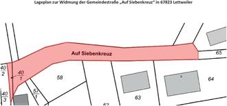 Gemäß § 36 des Landesstraßengesetzes für Rheinland-Pfalz (LStrG) in der Fassung vom 01.08.1977 (GVBl. Seite 273), in der derzeit geltenden Fassung, und dem Beschluss des Ortsgemeinderates der Ortsgemeinde Lettweiler vom 18.04.2024 werden die nachstehend bezeichneten Verkehrsflächen dem öffentlichen Verkehr gewidmet.