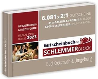 Der Schlemmerblock 2023 für Bad Kreuznach & Umgebung ist für 29,90 € in den beiden Touristinformationen der Ferienregion Nahe-Glan erhältlich und ab jetzt gültig. Entdecken Sie mit dem Gastronomie- und Freizeitführer Ihrer Stadt und Region kulinarische Highlights und tolle Freizeiterlebnisse!