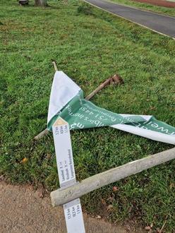 In der Nacht zum 27.10.2024 wurden ein Hinweisschild und ein Banner der OG Bärweiler am „Alten Denkmal“ in Bärweiler vorsätzlich und mutwillig aus ihren Befestigungen gerissen und zerstört.
