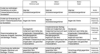 Da die oben beschriebene Umstellung zum gegenwärtigen Zeitpunkt noch nicht erfolgt ist, ergeben sich bei Ausbaumaßnahmen im Bereich der Wasserversorgung, aufgrund der unterschiedlichen Regelungen von