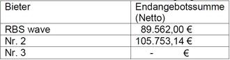 Jochen Stumm führte zu dem Punkt aus, dass die submittierte Summe unter dem in der Vorlage abgedruckten Wert von 143.000 € liegt, um etwa die Hälfte. Den genauen Betrag konnte Herr Stumm jedoch nicht nennen. Im weiteren Austausch haben sich der Werkausschuss und die Werkleitung darauf verständigt, dass, sofern Entscheidungsunterlagen Informationen enthalten, die erst nach Erstellung der Unterlagen bekannt sind, diese im Nachgang aktualisiert und als Tischvorlage vor der Werkausschusssitzung ausgehändigt werden.