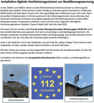 Auch in der Stadt Kirn und in den Stadtteilen, wo seit Ende des „kalten Krieges“ keine Sirenen mehr vorgehalten wurden, werden wieder welche installiert und auch betrieben.