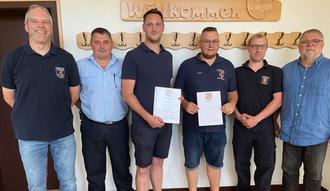 Am 13.07.2022 wählten die aktiven Feuerwehrangehörigen der Feuerwehreinheit Meckenbach Kevin Jost zum Wehrführer sowie den bisherigen Wehrführer, Carsten Scherer, zum stellv. Wehrführer.