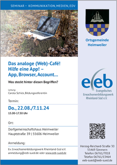 Die Digitalisierung schreitet voran, doch viele Menschen, deren Alltag nicht nur in der digitalen Welt stattfindet, fühlen sich abgehängt. Welche Bedeutung haben die Begriffe und in welchem Zusammenhang stehen sie? Der Workshop steht unter dem Motto Hilfe zur Selbsthilfe! In dem Workshop werden wir uns in gemütlicher Runde mit: