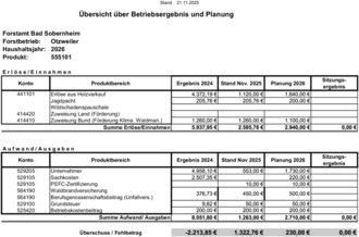 1.): Bekanntgabe der Betriebsergebnisse im Gemeindewald 2024
