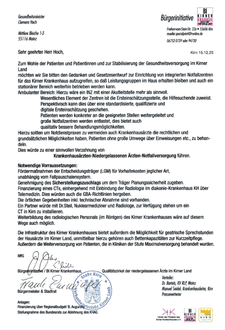 Zu diesem Tagesordnungspunkt begrüßte der Vorsitzende die Eheleute Müller von der BI "Kirner Krankenhaus". Herr Müller verlas folgende Resolution: