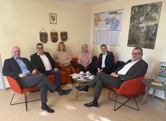 Im Rahmen eines gemeinsamen Austauschs würdigten VG-Bürgermeister Michael Cyfka, der Oberbürgermeister der Stadt Bingen Thomas Feser, vhs-Leiter René Nohr, die ehrenamtlichen Leiterinnen der VHS Langenlonsheim Sylvia Vollmer und des VBW Stromberg Joke Dupont sowie Büroleiter Ralf Hippert die erfolgreiche Entwicklung der Kooperation.
