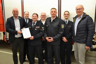 Nachdem die Amtszeit von Wolfgang Closheim als bisheriger Wehrführer der Freiwilligen Feuerwehr Langenlonsheim turnusgemäß abgelaufen war, stand diese Führungsfunktion jetzt zur Wahl. Anlässlich einer Wahlversammlung konnten die Mitglieder der Einsatzabteilung der Langenlonsheimer Wehr hierzu ihre Stimme abgeben. Erneut bekam Wolfgang Closheim durch die Mannschaft das Vertrauen ausgesprochen. Bürgermeister Michael Cyfka händigte Closheim die Ernennungsurkunde für eine weitere Amtszeit aus und wünschte ihm für eine weitere Periode von zehn Jahren viel Glück und Erfolg bei seinen vielfältigen Aufgaben als Wehrführer der Stützpunktfeuerwehr Langenlonsheim. Erfreut zeigte sich Cyfka, dass mit Wolfgang Closheim ein erfahrener Wehrführer die Geschicke der Feuerwehr Langenlonsheim auch zukünftig lenken wird und seine beiden Stellvertreter Christian Lossa und Sascha Closheim ihm weiterhin zur Seite stehen. Zu den zahlreichen Gratulanten zählten auch Wehrleiter Bernhard Schön, der stellvertretende Wehrleiter Peter Beurschgens und seitens der Ortsgemeinde Langenlonsheim Ortsbürgermeister Bernhard Wolf.