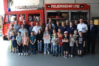 In Vertretung von Bürgermeister Michael Cyfka händigten die Erste Beigeordnete Elke Stern und Beigeordneter Claus-Werner Dapper der Gruppenleiterin Iris van Ghemen und den Betreuerinnen und Betreuern der neu gegründeten Kinderfeuerwehr ihre Ernennungsurkunden aus. Somit steht dem Betreuungspersonal und den „Löschzwergen Trollbachtal“ für Ihre gemeinsame Entdeckungsreise in die Welt der Feuerwehr nichts mehr im Wege.