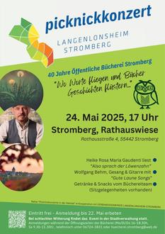 In Kooperation mit der Öffentlichen Bücherei Stromberg, aus Anlass zum 40-jährigen Jubiläum, gestalten diese den Auftakt der Picknickkonzert-Reihe:
