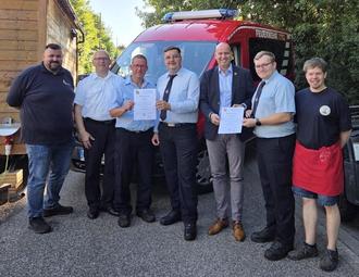 Der Einladung der Freiwilligen Feuerwehr Seibersbach zum Sommerfest 2025 waren zahlreiche Feuerwehren aus der ganzen Verbandsgemeinde und Bürgerinnen und Bürger gerne gefolgt. Bürgermeister Michael Cyfka freute sich Magnus Nitze zum Betreuer der Jugendfeuerwehr Seibersbach ernennen zu können und überreichte ihm direkt die Ernennungsurkunde. Darüber hinaus beförderte er aufgrund erfolgreich abgeschlossener Weiterbildungen Magnus Nitze zum Hauptfeuerwehrmann und Niclas Baumgarten zum Löschmeister. Neben Bürgermeister Cyfka gratulierten auch der stellvertretende Wehrleiter der Verbandsgemeinde, Peter Beuschgens, Wehrführer und Ortsbürgermeister Ralf Noch zum frisch erworbenen Dienstgrad und zur Ernennung. Abschließend gilt der Dank allen Kameradinnen und Kameraden, die sich 24 Stunden und 7 Tage in der Woche zum Wohle der Allgemeinheit einsetzen.