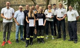 In Schöneberg beging die Freiwillige Feuerwehr gemeinsam mit befreundeten Wehren und der Bevölkerung ihr alljährliches Sommerfest. Die Feierlichkeiten boten einen würdigen Rahmen für die Verpflichtung zum Feuerwehrdienst von zwei neuen Einsatzkräften durch Bürgermeister Michael Cyfka. Maria-Sophie Thiel und Julia Neumann erhielten ihre Ernennungsurkunden und wurden vom VG-Chef per Handschlag für den verantwortungsvollen Dienst in der Feuerwehr verpflichtet. Den Glückwünschen Cyfkas schlossen sich Wehrführer Jan Eckart, Wehrleiter Bernhard Schön und sein Stellvertreter Wolfgang Closheim an. Auch Ortsbürgermeister Heinz-Dieter Wopen brachte sein Stolz und seine Freude zum Ausdruck, dass die Freiwillige Feuerwehr Schöneberg Zulauf von jungen Menschen erhält und nun zwei weitere junge Frauen für den Dienst in der Freiwilligen Feuerwehr gewonnen werden konnten. Im Anschluss an die Feierstunde ehrte der Förderverein der Feuerwehr Schöneberg verdiente Mitglieder und überreichte den Jungs der Jugendfeuerwehr Stromberg als Siegerteam der Feuerwehr-Wettkämpfe den Wanderpokal, der im kommenden Jahr verteidigt werden soll.