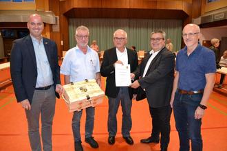Bürgermeister Cyfka überreichte Herren Wein ein Präsent und wünschte ihm für die Zukunft alles Gute und viel Erfolg.