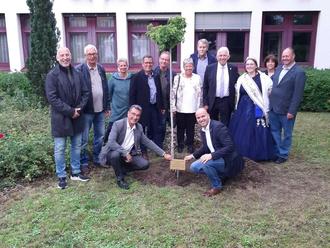 Delegation der Bürgermeister aus Bad Tennstedt, Bernkastel-Kues und Langenlonsheim-Stromberg beim Pflanzen des Partnerschaftsbaumes.