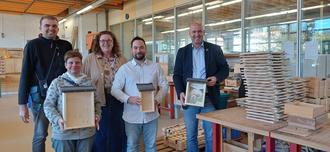 Neben den stabilen und umweltgerechten Flyerboxen aus Holz werden unter anderem auch Insekten- und Igelhotels angefertigt. Die Ideen für neue Produkte stammen sowohl von Kollegen des Lebenshilfe Chancen-Zentrums als auch aus Anfragen von Unternehmen.