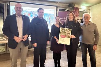 Nisthilfen bauen, Wasser sparen oder defekte Elektrogeräte reparieren, statt sie wegzuschmeißen – die Möglichkeiten, sich aktiv für den Umwelt- und Klimaschutz einzusetzen, sind vielfältig. Der Westenergie Klimaschutzpreis fördert bereits seit 30 Jahren das bürgerschaftliche Engagement für Nachhaltigkeit. Der Infrastrukturanbieter und Energiedienstleister prämiert jährlich herausragende Projekte gemeinsam mit seinen Partnerkommunen. In diesem Jahr gab es elf prämierte Projekte im Landkreis Bad Kreuznach. Jedes Projekt wird mit einem Preisgeld in Höhe von 500 Euro gefördert. „Dass Klimaschutz direkt vor unserer Haustür beginnt, zeigen unsere Preisträgerprojekte eindrucksvoll. Wir brauchen Vorbilder, an denen wir uns orientieren können“, da waren sich Thomas Jung, Bürgermeister der VG Kirner-Land und Michael Cyfka, Bürgermeister der VG Langenlonsheim-Stromberg einig.