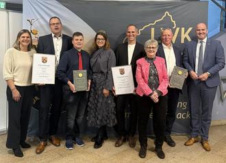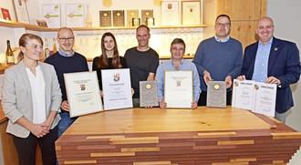 Aus der Verbandsgemeinde Langenlonsheim-Stromberg kommen in diesem Jahr zwei Preisträger aus dem Weinanbaugebiet Nahe. Den Großen Staatsehrenpreis erhielt das Weingut Wolfgang Schneider aus Guldental und der Staatsehrenpreis geht an das Weingut Enk aus Dorsheim. Bürgermeister Michael Cyfka ließ es sich nicht nehmen, beiden Preisträgern vor Ort zu gratulieren und überreichte eine Urkunde.