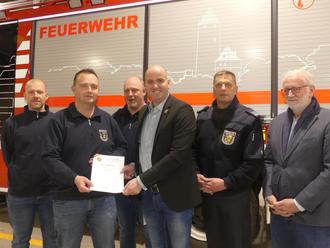 Ausgezeichnete Arbeit hätte die Aktiven der Freiwilligen Feuerwehr-Einheit Stromberg in den vergangenen 10 Jahren geleistet, würdigte VG-Bürgermeister Michael Cyfka die Verdienste der Feuerwehrleute um Wehrführer Thomas Harig, der seit 2012 diesen Posten bekleidet hatte. Mit 118 Alarmierungen in diesem Jahr und den daraus folgenden Einsätzen habe sich die gesamte Einheit wie schon in den Vorjahren erneut als funktionierende Gemeinschaft erwiesen, lobte seinerseits Hauptbrandmeister Harig, den der Bürgermeister nun für weitere 10 Jahre im Amt vereidigte. Im Rahmen der Feuerwehr-Dienstbesprechung sprachen 22 von 26 stimmberechtigten Anwesenden dem Wehrführer erneut das Vertrauen aus. Zudem gab es zwei Nein-Stimmen und zwei Enthaltungen. Weiterhin als Stellvertreter steht Harig künftig Oberbrandmeister Marcel Klein zur Seite. Da der andere, bisherige Stellvertreter, Oberbrandmeister Sven Pleines nach 10 Jahren die Wehrführung verlässt, mussten die Feuerwehrleute einen weiteren Stellvertretenden Wehrführer neu wählen. Hier sprachen sie sich mit 22 Stimmen bei drei Enthaltungen und einer Gegenstimme für Brandmeister Dirk Theiß aus, der jetzt ebenfalls auf 10 Jahre gewählt ist und von Bürgermeister Cyfka feierlich vereidigt wurde. spg