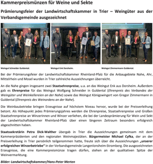Weingüter und Weinkellereien an der Nahe) sowie das Weingut Königswingert von Gregor Zimmermann in Guldental (Ehrenpreis des Weinordens an der Nahe).