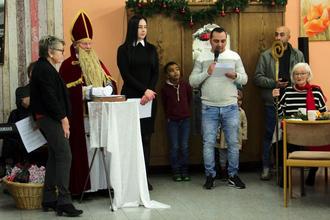 Der Höhepunkt des Festes war der Besuch des Nikolaus. Er brachte den vielen anwesenden Kindern ein süßes Geschenk, das vom Team liebevoll in selbst genähte Säckchen eingepackt worden war.