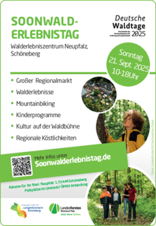 Am Sonntag, 21. September 2025 findet der weit über seine Grenzen hinaus bekannte und beliebte Soonwald-Erlebnistag rund um das Walderlebniszentrum Neupfalz in Schöneberg statt. Die Verbandsgemeinde Langenlonsheim-Stromberg ist in Kooperation mit Landesforsten Veranstalter und konnte sich über steigende Besucherzahlen freuen. Zahlen die uns auch einiges an Logistik abfordern, sodass wir dieses Jahr noch stärker in den ÖPNV, Besucherlenkung und Verkehrsüberwachung investieren.