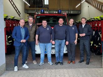 Bürgermeister Markus Lüttger, Ortsbürgermeister Heiko Schmitt, Wehrführer Florian Zimmermann, Martin Welker, Stellv. Wehrführer Frank Gettmann und Wehrleiter Christian Vollmer
