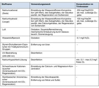 Es handelt sich um Stoffe, die bei der Aufbereitung aus dem Trinkwasser vollständig oder so weit entfernt werden, dass sie oder ihre Umwandlungsprodukte im Trinkwasser nur als technisch unvermeidbare und technologisch unwirksame Reste in gesundheitlich, geruchlich und geschmacklich unbedenklichen Anteilen enthalten sind.