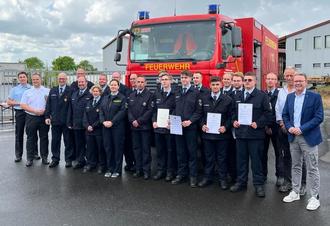 Für ihr Engagement bei der Flutkatastrophe verlieh Bürgermeister Markus Lüttger die Fluthelfermedaillen an folgende Aktive: Jasmin Baumgärtner, Jens Fey, Kai Sonnet, Oliver Sonnet, Frank Webler (alle Feuerwehreinheit Hergenfeld) sowie Dirk Biedenbender, Marius Dinges, Markus Knepper, Felix Sander, Dirk Zimmermann, Heiko Zuck (alle Feuerwehreinheit Spabrücken).