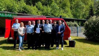Stellvertretender Wehrführer Kevin Jörg freute sich, dass Bürgermeister Markus Lüttger im Beisein von Wehrleiter Christian Vollmer und Ortsbürgermeisterin Petra Ender mit Michael Rapphahn ein neues Mitglied für den aktiven Dienst in der Feuerwehr verpflichten konnte, der künftig die Mannschaft verstärken wird.