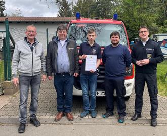 Anlässlich des Feuerwehrfestes begrüßte der Erste Beigeordneter Heinz-Martin Schwerbel gemeinsam mit Wehrleiter Christian Vollmer mit Miko Ficca ein neues aktives Mitglied in der Oberstreiter Wehr und verpflichtete den jungen Mann für den Dienst in der Freiwilligen Feuerwehr. Wehrführer Christoph Klein und Ortsbürgermeister Rudolf Sutor freuten sich, dass Miko Ficca, der in der Kinder- und Jugendfeuerwehr Waldböckelheim groß geworden ist, künftig die örtliche Feuerwehr verstärken wird.
