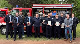 So wurden die Feuerwehrmann-Anwärter Jan-Hendrik Armbrüster und Lennart Geithe zum Feuerwehrmann befördert. Aufgrund ihrer abgeschlossenen Grundausbildung erhielten die Feuerwehrmänner Dario Capobianco, Eliano Capobianco und Christian Zimmermann die Ernennungsurkunden zum Oberfeuerwehrmann.