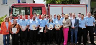 Constanze Klein, Leiterin der Vorbereitungsgruppe Rüdesheimer Feuersalamander, durfte sich über ihre Beförderung zur Oberlöschmeisterin freuen.