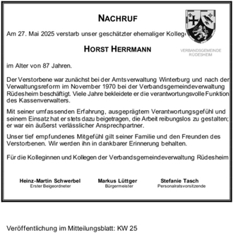 Der Verstorbene war zunächst bei der Amtsverwaltung Winterburg und nach der Verwaltungsreform im November 1970 bei der Verbandsgemeindeverwaltung