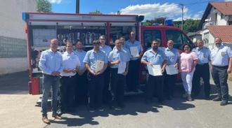 Anschließend freute sich Bürgermeister Markus Lüttger Beförderungen und Ehrungen vornehmen zu können. Tobias Schrothe und Christian Vogel wurden verpflichtet. Beide sind seit diesem Jahr aktiv in der Freiwilligen Feuerwehr Niederhausen. Martin Blätz erhielt die Ernennungsurkunde zum Hauptfeuerwehrmann. Christian Daum und Daniel Weiß wurden zu Löschmeistern, Alexander Bräunling und Karim El-Jaouni zu Oberlöschmeistern befördert. Das Bronzene Ehrenzeichen für 15-jährige Zugehörigkeit verlieh Bürgermeister Markus Lüttger an Aleander Bräunling und das Silberne Ehrenzeichen für 25-jährigen aktiven Dienst erhielt Karim El-Jaouni.