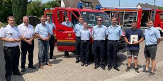 Im Beisein des Stellvertretenden Wehrleiters Jörn Trautmann nahm Bürgermeister Markus Lüttger Verpflichtungen, Beförderungen und Ehrungen vor. Auf dem Fest der Freiwilligen Feuerwehr Sponheim übergab Bürgermeister Lüttger außerdem offiziell das Kleinlöschfahrzeug (KLF), das bereits vor zwei Jahren in den Dienst gestellt wurde.