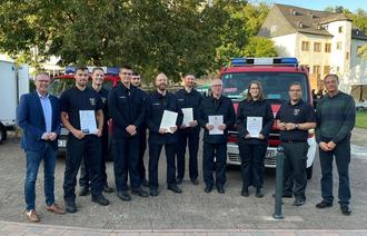 Wilhelm Unkel wurde nach abgeschlossener Grundausbildung zum Feuerwehrmann befördert. Seine Grundausbildung hatte Martin Schmeil bereits 2021 erfolgreich absolviert und wurde nun zum Oberfeuerwehrmann befördert. Darius Markgraf, der seine Truppführerausbildung abgeschlossen hat durfte seine Beförderungsurkunde zum Hautfeuerwehrmann in Empfang nehmen.