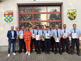 Zum offiziellen Teil konnten Bürgermeister Markus Lüttger und Landrätin Bettina Dickes, im Beisein von Ortsbürgermeister Dr. Hartwig Suhr und Wehrführer Volker Walg, Verpflichtungen, Beförderungen und Ehrungen vornehmen.
