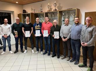 Senioren: Nach dem nur knapp verpassten Aufstieg der 1. Mannschaft in die Kreisoberliga in der Saison 2022/2023 hat man nur einen Spieler in der Winterpause verloren und ein weiterer Spieler wechselt nach der Sommerpause zu einem anderen Verein. Über weitere Abgänge oder Zugänge ist bisher noch nichts bekannt, an letzterem werde derzeit gearbeitet und Gespräche geführt. Beide Mannschaften der FSG stehen in ihren Ligen derzeit auf dem 9. Platz, mit Tendenz nach oben. In der Abteilung Tischtennis sieht es eher weniger rosig aus. Keine Mannschaft nimmt derzeit am Punktspiel-Betrieb teil, aber es soll wieder eine Damenmannschaft an den Start gehen. Die seit letztem Jahr neu gegründete Dart-Abteilung hat regen Zulauf und trainiert immer montags im Vereinsheim des RSV Dauborn von 19 Uhr bis 21 Uhr. „Neue oder alte Hasen“ sind hier immer wieder herzlich willkommen. Auch die AH des RSV ist gut aufgestellt - hier soll das Team in Zukunft aber auch als FSG Dauborn/Neesbach auflaufen, da schon einige Spieler des Partners in Dauborn trainieren und mitspielen. Vollzug soll in dieser Causa schon bald gemeldet werden. Sehr wichtig ist die Abteilung Vereinsanlagen im RSV, die mit einem kleinen Team und wöchentlichen Einsätzen das Sportgelände immer in einem einwandfreien und tadellosen Zustand hält. Aber hier zeigt sich deutlich, wo derzeit, wie bei vielen anderen Vereinen auch, der Schuh drückt. Es fehlt an Nachwuchs, auch abseits des Rasens. Fast nur ältere Vereinsmitglieder sind jeden Mittwoch am „werkeln“ und können einige Arbeiten nicht mehr so ausführen, wie es nötig ist. Auch im Vortrag der Abteilung Kultur wird der mangelnde Einsatz der „eigenen Leute“, bei den Arbeiten vor oder nach einer Veranstaltung, bemängelt. Hier sollen auch noch mehr Bekannte und Freunde, sowie Eltern der Jugendspieler eingebunden werden. Die Geräteprüfer teilten der Versammlung mit, dass alle Materialien gem. Liste vorhanden sind und die Kassenprüfer attestierten eine fehlerfreie Kassenführung und beantragten die Entlastung des Vorstands. Dem folgte die Versammlung einstimmig. Zur Tradition gehört auch beim RSV, dass langjährige Mitglieder und „fleißige“ Spieler für Ihre Treue geehrt werden und ein Präsent in Empfang nehmen dürfen. Bei der diesjährigen Jahreshauptversammlung wurden für langjährige Mitgliedschaften folgende Mitglieder geehrt, wobei die Ehrung für 70-jährige Mitgliedschaft von Werner Grün besonders heraussticht. Werner hat zudem in 1074 Spielen das Trikot seines Vereins getragen und steht somit auf Platz 3 der „Ewigen-Spiel-Liste. Chapeau!! Stolze 60 Jahre im Verein ist Erich Hofmann und 50 Jahre Mitglied im Verein ist Rainer Crecelius. Für 40 Jahre Treue wurden Bodo Büttner und Markus Siegel geehrt. 25 Jahre im Verein sind der ehemalige 1. Vorsitzende, Dr. Sebastian Blanck, Nicole Roth und Dominique Mäuer. Für 300 Spiele im Dress des RSV und der FSG Dauborn/Neesbach wurde Andreas Großmann geehrt. Einige Jubilare konnten nicht persönlich geehrt werden, da sie teilweise aus gesundheitlichen Gründen nicht vor Ort sein konnten. Gute Besserung an dieser Stelle. Weiter fanden satzungsgemäße Neuwahlen des Schriftführers, Ausschussvorsitzende, stellvertretende Abteilungsleiter, Pressewart und Beisitzer statt. Dabei wurden folgende Personen in ihren Ämtern durch die anwesenden Mitglieder bestätigt oder neu hinzu gewählt; Schriftführer: Timo Hofmann, Beisitzer Vorstand: Heinz Jäger, Beisitzer Vorstand: Andreas Busche, stv. Spielausschuss: Malek Jäger, stv. Jugendleiter: Gerold Jäger, Beisitzer Jugend: Frank Völker, stv. Abteilung AH: Sven Jungbauer, stv. Abteilung Tischtennis: Martina Stricker, stv. Abteilung Vereinsanlagen: Marcel Mäuer, stv. Abteilung Darts: Leander Möhn,