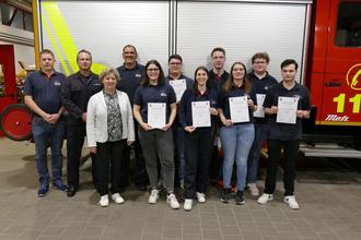 So wurden anschließend auch einige Beförderungen ausgesprochen: Lara Lang, Luzia Lang, Johanna Walther, Max Lang, Jonas Schmidt und Faustinas Eisel wurden aufgrund ihrer Fortbildungen zum Feuerwehrmann bzw. zur Feuerwehrfrau ernannt. Darüber hinaus darf sich aufgrund von weiterführenden Lehrgängen Malte Kees ab sofort als Hauptfeuerwehrmann bezeichnen.