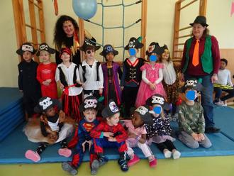 Mit bunten Stirnbändern und viel Stimmung feierten die Eichhörnchen zum „Partyhit“. Die Eulen hatten aufwendig dekorierte Hüte und führten den „Feuerwehrtanz“ vor. Bei den Hasen konnte man gefährliche Piraten mit Piratenhüten sehen, die einen wilden „Piratentanz“ zeigten. Alle Gruppen bekamen viel Applaus und in Anschluss wurde noch ordentlich gefeiert. Am Rosenmontag ging es direkt weiter mit einer ganz besonderen Veranstaltung. In der Kita stieg eine große Pyjamaparty. Alle Kinder und Erzieherinnen kamen mit Schlafanzügen und einem Kuschelkissen von zu Hause in die Einrichtung, der Turnraum war mit unzähligen Federn aus Papier geschmückt und überall lagen große, mit Luftballons gefüllte Bettdecken und Kissenbezüge bereit, auf denen die Kinder nach Herzenslust spielen, kuscheln und toben konnten. Passend dazu gab es für alle Würstchen im Schlafrock. Die Erzieherinnen hatten sich zu dem Thema viele Mitmachspiele überlegt. Mit den Kissen wurde balanciert, es wurden Türme gebaut, ein Parcours bewältigt und vieles mehr. Natürlich durfte auch eine Polonaise nicht fehlen. Zwischendurch wurden im neu gestalteten Ruheraum Geschichten zum Träumen vorgelesen. Alle waren sich einig, dass es ein toller Tag war und dass es sicherlich nicht die letzte Pyjamaparty in der Kita gewesen sein wird. Der Faschingsdienstag stand ganz im Zeichen einer alten Tradition. Die Kinder konnten sich in verschiedene Gruppen einwählen und waren im Dorf unterwegs, um das Kirberger Fassenachtslied „Ho, ho, ho, die Fassenacht ist do!“ in verschiedenen Geschäften, im Altenheim, Rathaus und bei der Tagespflege vorzutragen. Sie erhielten als Lohn begeisterte Gesichter und zur Begeisterung der Kinder viele leckere Süßigkeiten. Schade, dass danach die tollen Tage schon wieder vorbei waren! Aber alle Kinder und Erzieherinnen freuen sich schon wieder auf das nächste Jahr, wenn es wieder heißt: „Kirberger Kita- Helau!“