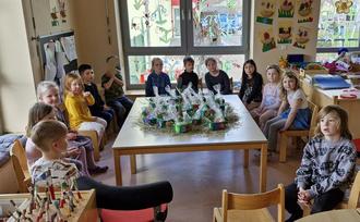 In der Zwischenzeit war der Osterhase in der Kita unterwegs. Es wurde in jeder Gruppe ein großes Osternest gebaut und mit den selbstgebastelten, befüllten Körbchen bestückt. Die Begeisterung war bei allen Kindern sehr groß.