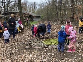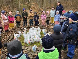 Natürlich haben die Kinder auch in diesem Jahr im nahen Wald ein großes Osternest aus Naturmaterialien gebaut. Selbst die Kleinsten halfen fleißig mit und sammelten jede Menge Moos, Rinde uns Äste.