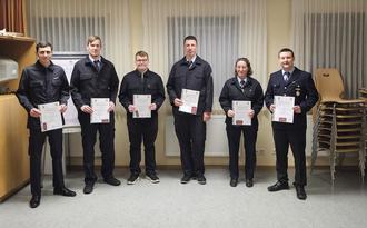 Wehrführer Nico Losert und sein stellv. Thorsten Müller nahmen die Beförderungen vor.