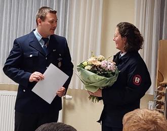 Zum Schluss bedankte sich Wehrführer Nico Losert bei Michaela Formanski-Knoth für ihren Jahrelangen Einsatz in der Jugendfeuerwehr und überreichte ein Präsent sowie einen Blumenstrauß. Anschließend lässt er die Jahre Ihrer Amtszeit nochmal Revue passieren und stellte fest dass er 15 Jahre alt war als Michaela die JFW übernommen hat und er selbst noch Mitglied der selbigen war.