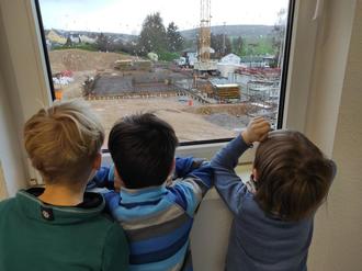 Danach durften wir mit dem gläsernen Aufzug eine Etage höher fahren. Dort hat uns Frau Scheu-Menzer erwartet um uns ihr Büro und die Computer zu zeigen. Schließlich durften wir der Bürgermeisterin im großen Besprechungszimmer die Fragen stellen, die wir uns vorher überlegt hatten. Zwischendurch konnten wir sogar die Baustelle vom Schwimmbad von oben bestaunen!