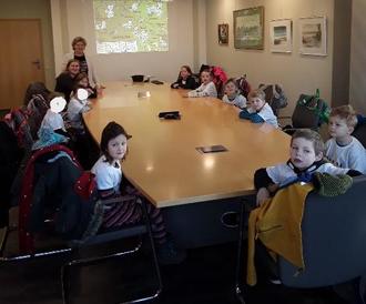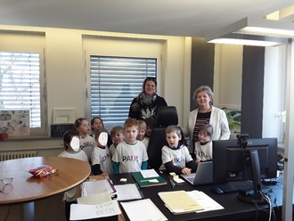 Mit großer Aufregung ging es mit dem Bus nach Kirberg. Die Vorschulkinder waren schon ganz gespannt was sie heute erleben werden. In Kirberg angekommen suchten wir erstmal das Büro von unserer Bürgermeisterin, Silvia Scheu-Menzer. Neben dem Büro, gab es einen großen Sitzungssaal, dort durften sich die Kinder an den großen Tisch setzten und ausgiebig das mitgebrachte Frühstück essen. Währenddessen erkundigte sich Frau Scheu-Menzer nach den Hobbys und Wünschen speziell für Heringen. Danach ging es auch schon los. Unsere Bürgermeisterin erklärte uns den neuen Hünfeldener Kinderplan, der groß an die Wand projiziert wurde. Anschließend wurden wir von ihr einmal durch das ganze Rathausgebäude geführt und jedem Mitarbeiter der anwesend war vorgestellt. Vielen lieben Dank für den spannenden tollen Tag.